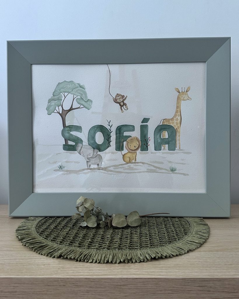 ¿No quieres que aparezcan los datos del bebé? También realizamos láminas personalizadas solo con el nombre.